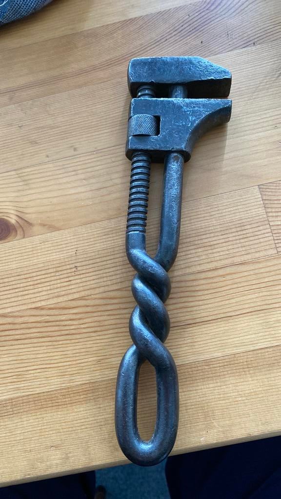 - Gedraaide Engelse Sleutel twisted monkey wrenchFraai stukje gereedschap van een, voor mij, onbekende fabrikant. Datering uit voorbeelden 1880 tot 1920Ophalen of Verzenden