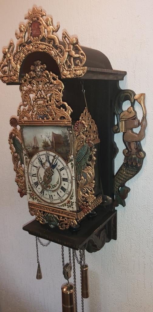- Friese staart klokOpruiming bij mn ouders. Prachtige friese staart klok. Loopt goed. Geheel compleet inclusief geborduurde loper. Af te halen in limmen.Ophalen