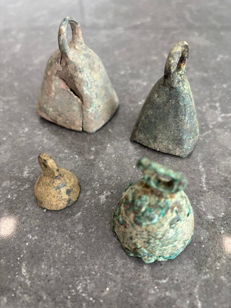 - Mooi Lot van 4 Romeinse Paardenbellen - bodemvondst▪︎dit is een leuk lot van 4 bronzen romeinse paardenbellen. ▪︎1E - 4e eeuw na christus. ▪︎Afmetingen/ gewicht: 5,7 cm - 87,5 gram 5,4 cm - 46,5 gram 4,2 cm - 41,5 gram 2,6 cm - 9,5 gram — de grootsteOphalen of Verzenden