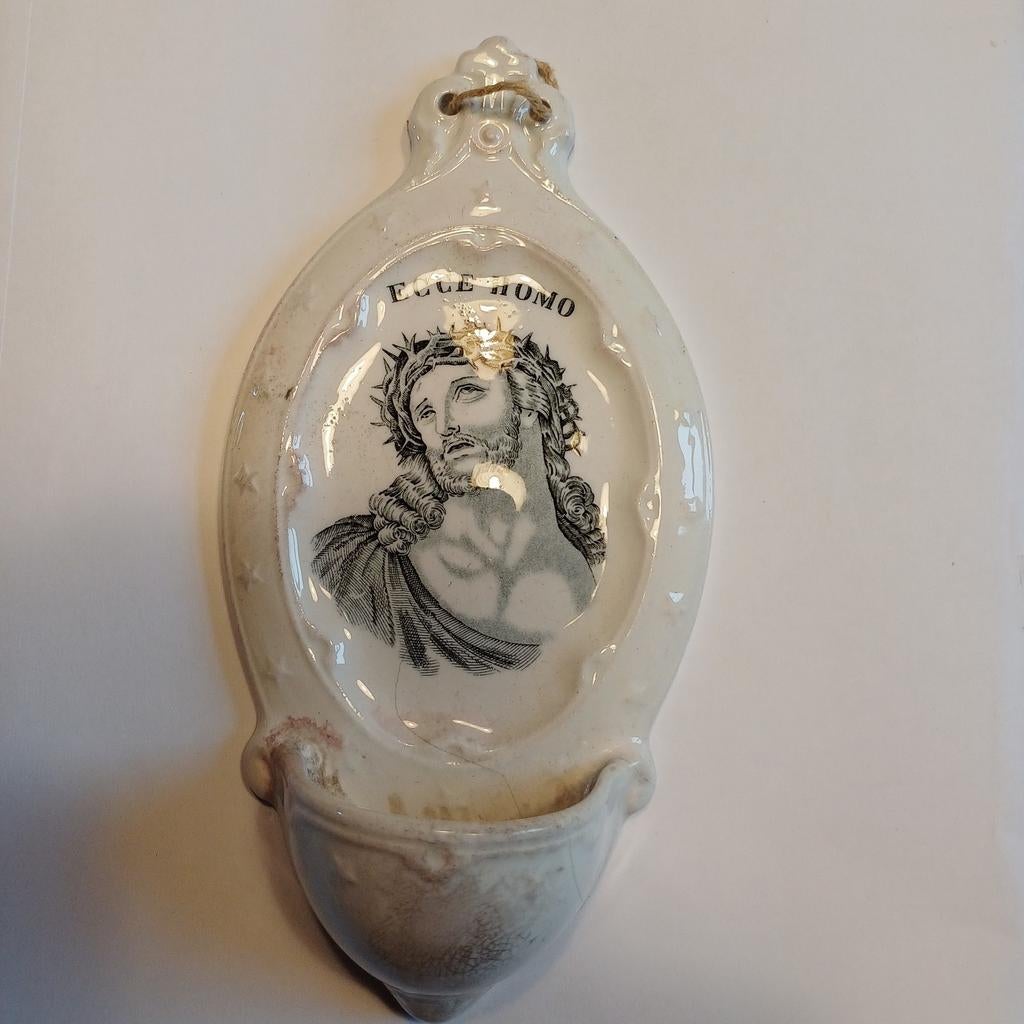 23 jan 26Vintage TroubleSomeren - (AD) wijwaterbakje ecco homo Petrus Regout(ad) wijwaterbakje ecco homo petrus regout hoogte 19 cm verzendkosten zijn voor de koperOphalen of Verzenden