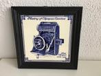- Tegel History of Olympus Cameras anno 1940Afmeting van de tegel 15x15 cm in goede staat met oud lijstje erom.