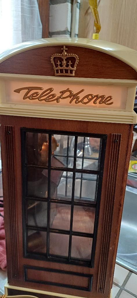 - oude telefooncelTelefooncel met radio, licht en geluid hoogte 45 breed 21 opbrengst is voor de zwerfhonden opvang van beti shej in macedoniëOphalen of Verzenden