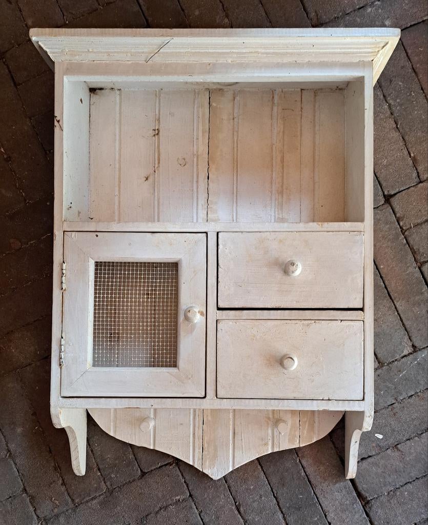 Ontdek ons unieke vintage hangkastje uit de categorie Antiek en Kunst. Dit stuk past perfect in elke verzameling van curiosa en brocante. Bekijk het nu!