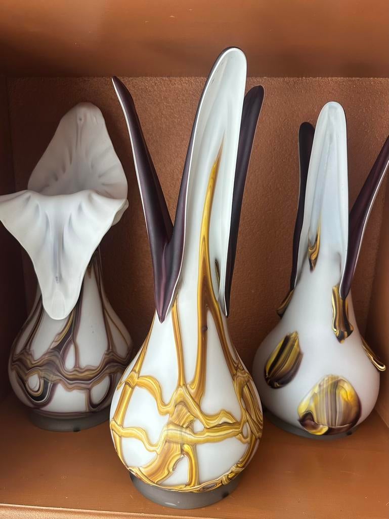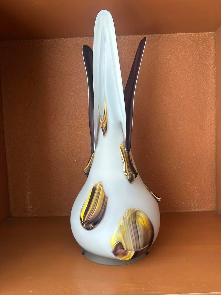 21 feb 26HelmaLisserbroek - Goldan talast vaasGoldan talast handgeblazen designvaas – 44 cm – noorwegen beschrijving prachtige handgeblazen designvaas van goldan talast (noorwegen). Sculpturale, organische vorm met drie afzonderlijke tuiten. HetOphalen of Verzenden