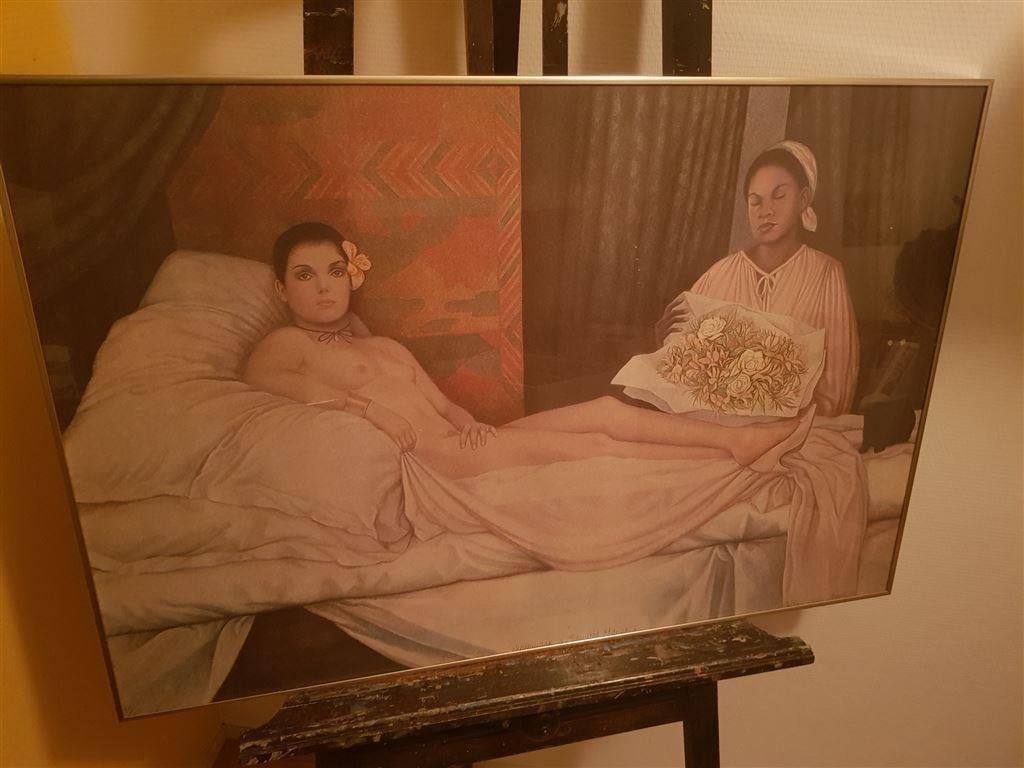 - Jean Paul Vroom [1922 - 2006], litho, gesigneerdGrote litho door jean paul vroom (den haag 1922 - amsterdam 2006) gesigneerd r.o. Titel: hommage a eduard manet. Gelijst en in passepartout. Afmetingen: 90 x 60 cm. Wordt i.v.m. Breukrisico glasplaatOphalen of Verzenden
