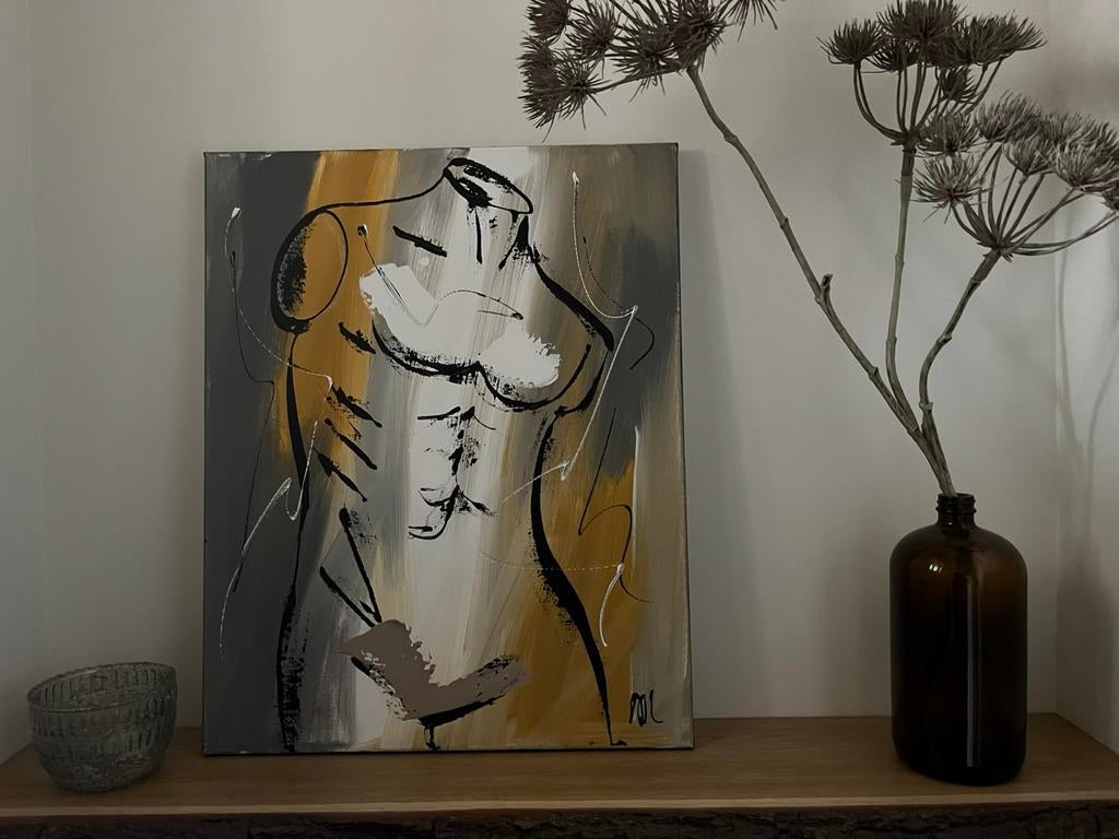 4 mrt 26Edith van GGaanderen - Torso van Corrie Leushuis 40x50 cm geel/grijs tintenModern acryl schilderij van torso in de kleuren geel en grijs. 50 Cm hoog, 40 cm breed. Van corrie leushuis uit 2023. Met echtheidscertificaat: 0026559.Ophalen of Verzenden