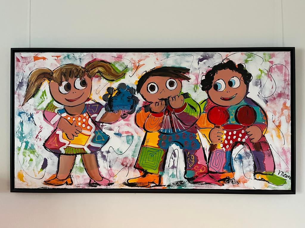 7 feb 26lienekeAlmere - Kleurrijk schilderij van Corrie LeushuisVrolijk en kleurrijk schilderij van corrie leushuis, met een voorstelling van muziek makende kinderen. Het schilderij is ingelijst en gesigneerd. Een echte blikvanger voor in huis! Het schilderij heefOphalen