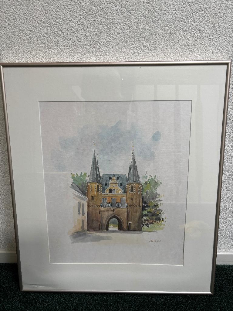 24 mrt 26marlinoRotterdam - Aquarel van A. Wieringa Broederpoort KampenMooie aquarel met de broederpoort van de stad kampen in lijst met passe partout. Dit is geen zeefdruk! Geschilderd door a. Wieringa. Lijst past mooi bij de kleutren in het schilderij. Lengte 59 cm, brOphalen of Verzenden