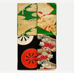 8 mrt 26CatawikiHeel Nederland - Borduurwerk - 410 cm - 30 cm - Set van 4 Fukuro ObiSet van vier fukuro-obi, twee groene grond en twee zwarte grond, geweven uit nishijin-ori zijde brokaat met goud- en zilverdraad, elk in haku-ori, afmetingen 410 cm bij 30 cm, daterend uit de shwa-per