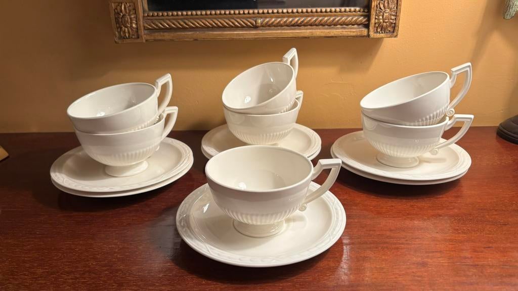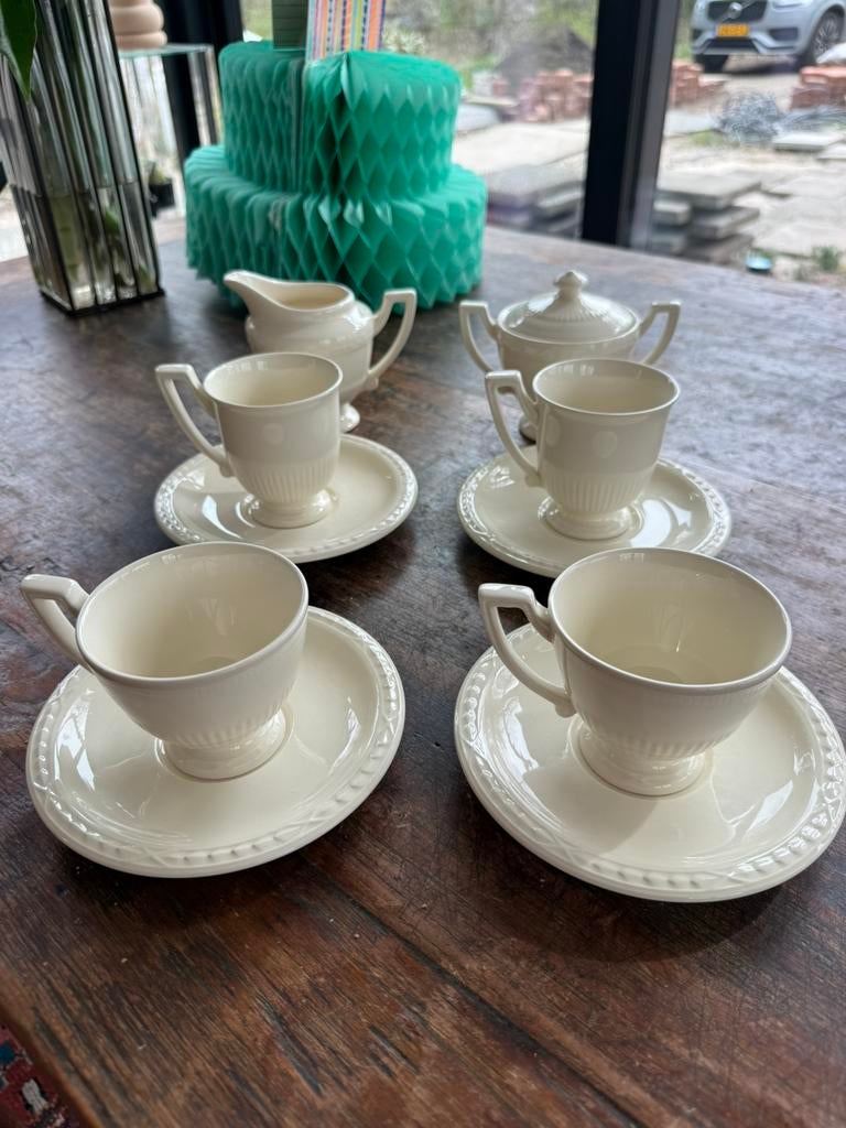 8 apr 26FrissenValkenburg - Recamier serviesonderdelen, 4 kommen, 4 schotels, 2 kopjesEen set van recamier serviesonderdelen. Het gaat om 4 kommen, 3 schotels en 3 kopjes. Alle onderdelen zijn crèmekleurig en hebben een geribbeld patroon aan de buitenkant. De onderkant van de kopjes enOphalen of Verzenden
