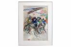 - Robert Roag - WielrennersOrigineel schilderij van robert roag, voorstellende wielrenners. De buitenmaten zijn 100 cm bij 80 cm, de binnenmaten zijn 53 cm bij 77 cm. Het schilderij is ingelijst en gesigneerd door de kunstenaar
