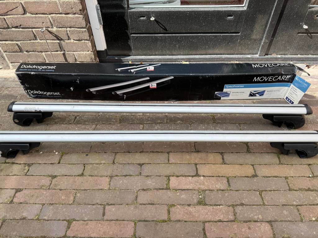 - Dakdragers Movecare RC-2865 - Max. 60kgSet universele dakdragers van het merk movecare, model rc-2865. Ideaal voor het vervoeren van extra bagage, fietsen of een dakkoffer. De dragers hebben een eigen gewicht van 3,65 kg en een maximale beGebruikt Ophalen of Verzenden