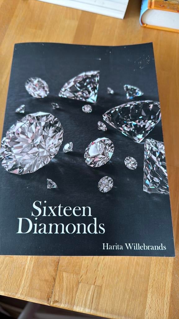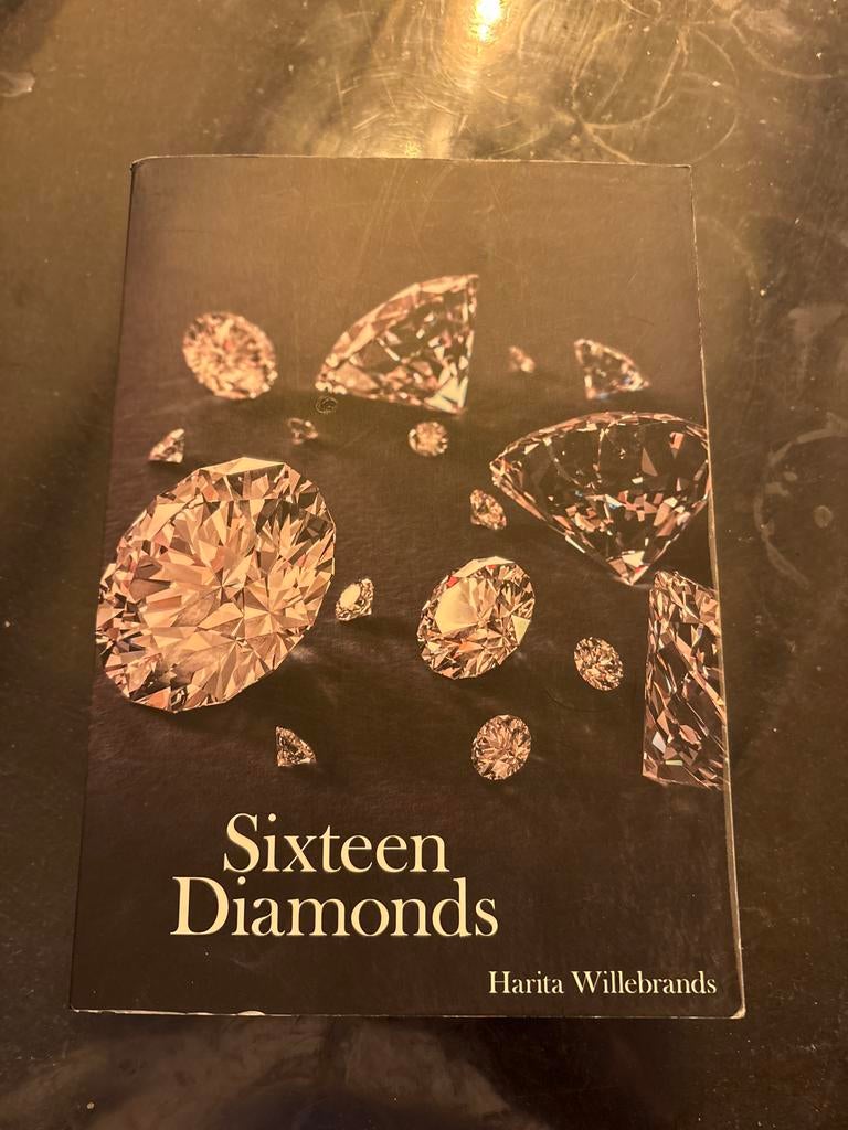 - Boek Sixteen Diamonds van Harita WillebrandsDit is het boek sixteen diamonds van harita willebrands. Het boek heeft een donkere kaft met afbeeldingen van diamanten erop. De titel en auteur staan duidelijk op de voorkant.Gelezen Ophalen of Verzenden
