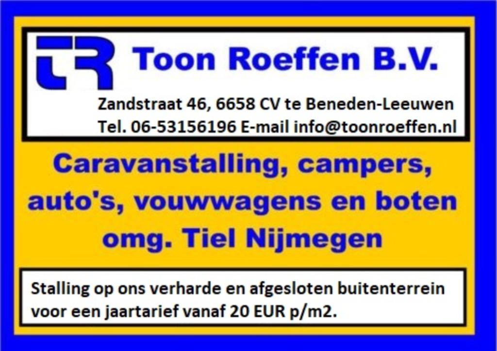 7 apr 26Toon Roeffen B.V.Beneden-Leeuwen - Vouwwagen Stalling Noordoostbrabant trailertent tenttrailerNat ingepakt? Bij ons kan uw vouwwagen of voortent tijdelijk uitgeklapt om te drogen! Nog enkele plekken! In nistelrode nabij knooppunt paalgraven waar a59 en a50 samenkomen. U stalt binnen een half u