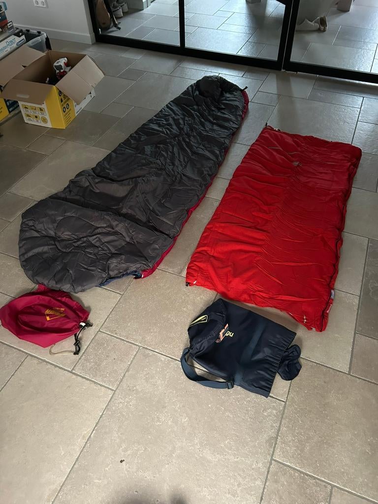 - slaapzakken Nomad junior en McKinleyTwee slaapzakken. Mckinley canyon 250x90cm bovenkant rood onderkant blauw nog in goede staat. € 10,00 momad junior neptunus zipper right poppy/silver € 10,00Gebruikt Ophalen