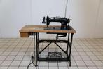 25 mrt 26TopadvertentieVendulion AuctionsAmstelveen - Bied meeVintage Singer Industriële NaaimachineAuthentieke gietijzeren singer naaimachine gemonteerd op een robuust houten werkblad met metalen onderstel. Afmetingen blad: 106,5 x 50,5 x 75,4 cm. Bieden is mogelijk op de website van vendulion . MaNieuw Ophalen of Verzenden