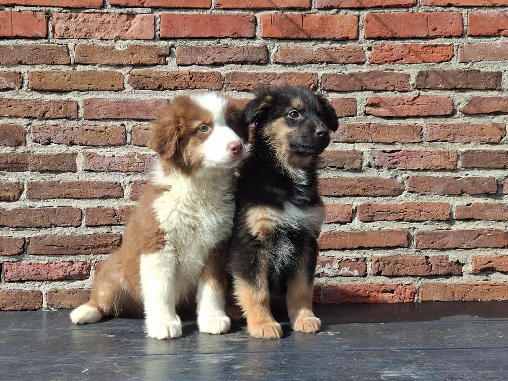 - Nog 2 prachtige australian Shepherd pups reutjesGeboren bij ons op de woonboerderij deze prachtige aussie pups! Het zijn prachtige, speelse pups. Er zijn black tricolor, blue merle, red merle, red tricolor. Zie foto's. Er zijn reutjes nog 2 reu