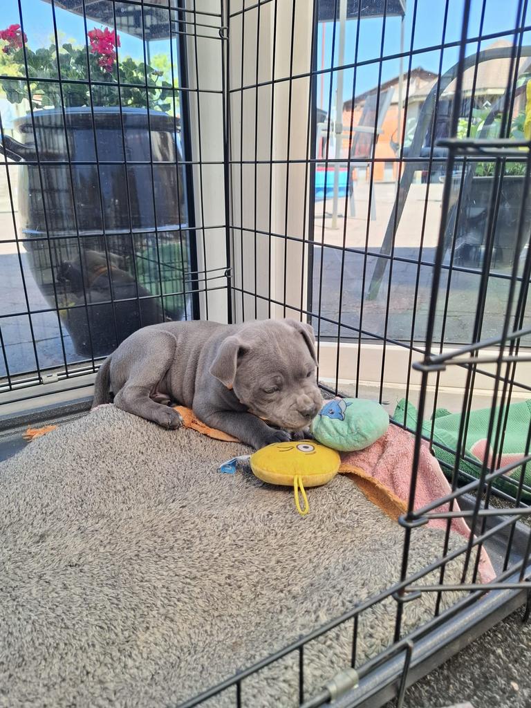 - Engelse Stafford ( staffordshire bull terrier )Bij ons is een prachtig nestje van 4 blauwe engelse staffords geb op 28 --2 geboren , en mogen zij het nestje verlaten. Er zijn nog twee stevige knappe reutjes beschikbaar. De pups groeien huiselijk o