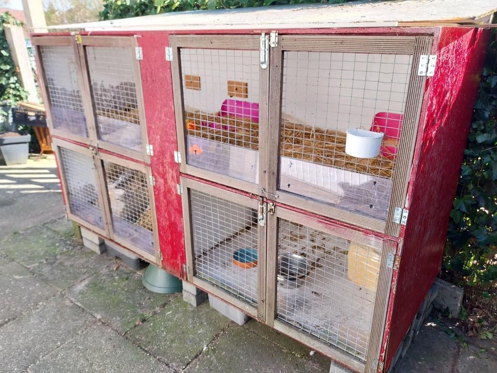 - Konijnenhok, kippenhok grootKonijnenhok 4 delig ideaal voor konijnen, cavia's, kippen, gevogelte e.d. Hok is gebruikt, maar schoon. Plaatmateriaal is redelijk. Nog wel 5 jaar te gaan ik til 1 hoek, dus graag met 2/3 personen