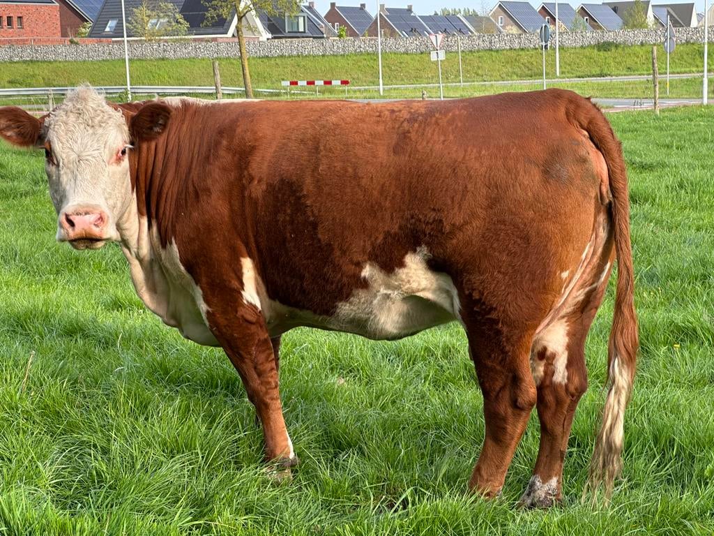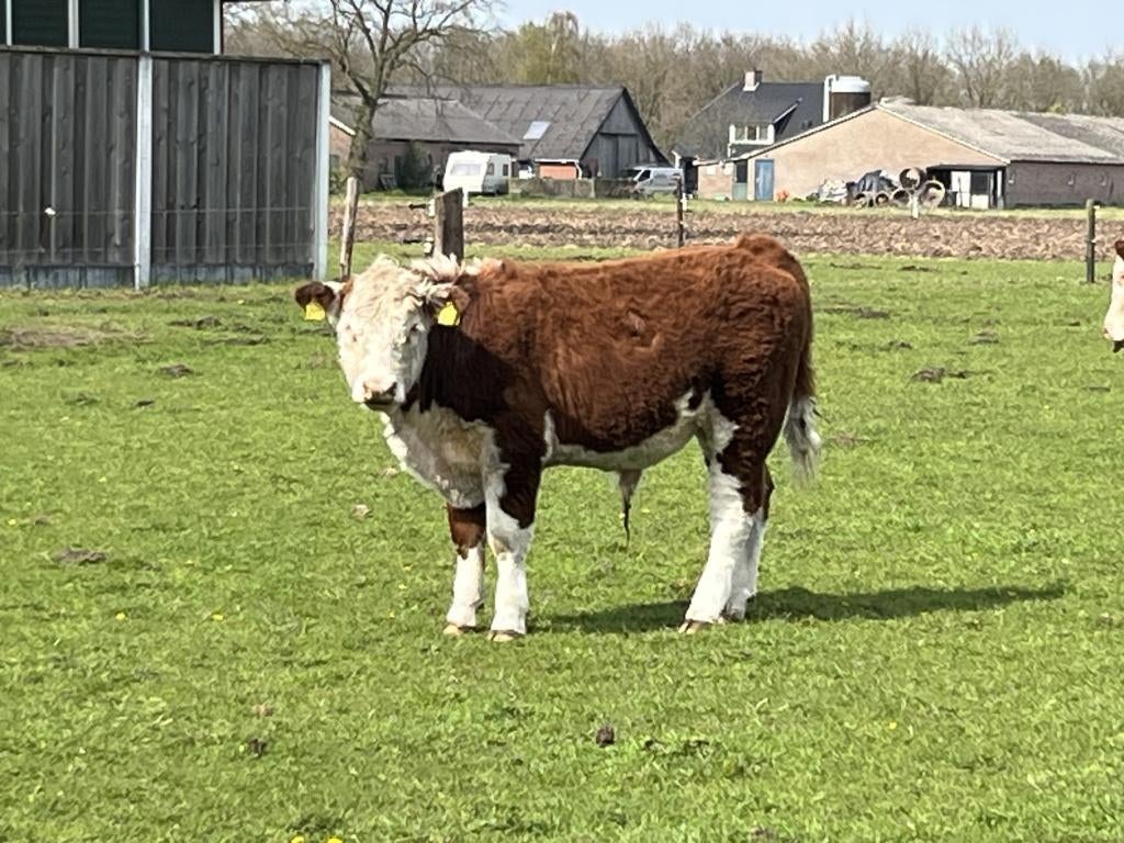 - Hereford stier P, dekstier, 100% stamboek, IBR en lepto vrijMooie makke hereford stier, fokstier, dekstier. Geboren op 03-07-2025. 100% Stamboek, polled. Ibr en leptovrij, hoornloos. Vader: legende p van de bommel, 100%her, stamboek moeder: huttert lieve p, 10
