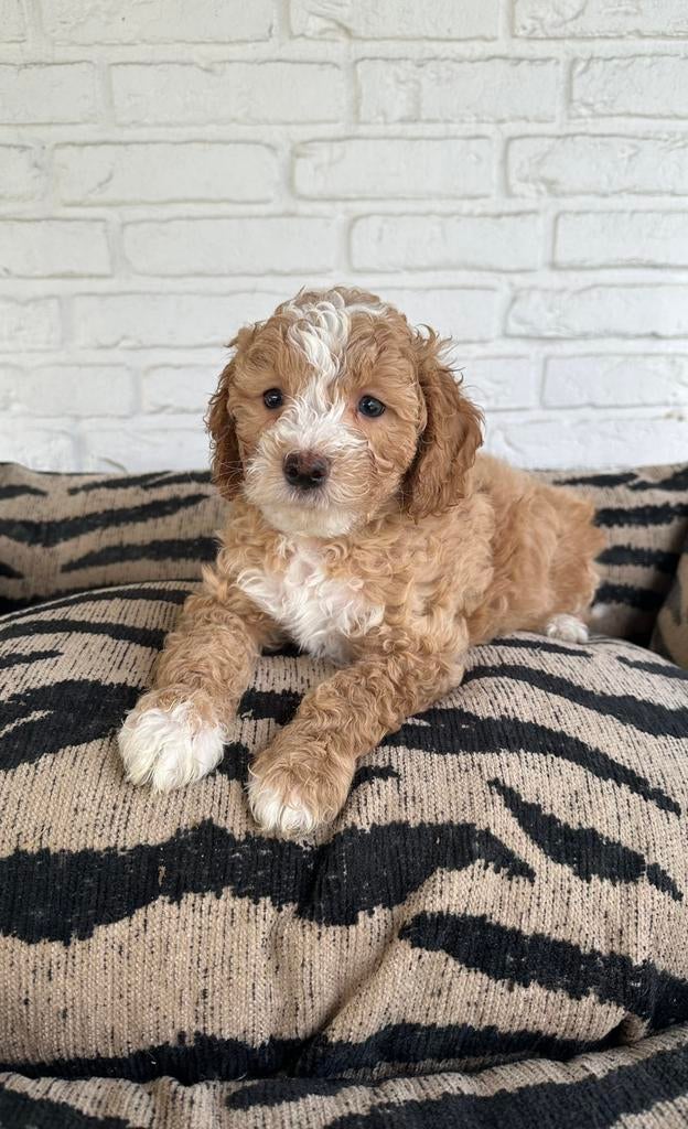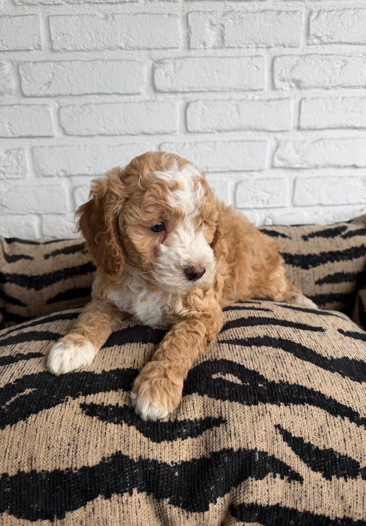 20 mrt 26GDidam - Labradoodle pup medium licht abrikoos, reutjeOnze hond heeft op 2 maart een nestje gekregen. Hieruit zijn 7 pups geboren, 4 reutjes en 3 teefjes, waarvan er op dit moment nog 2 reutjes beschikbaar zijn. Zowel de moeder als de vader zijn volledig