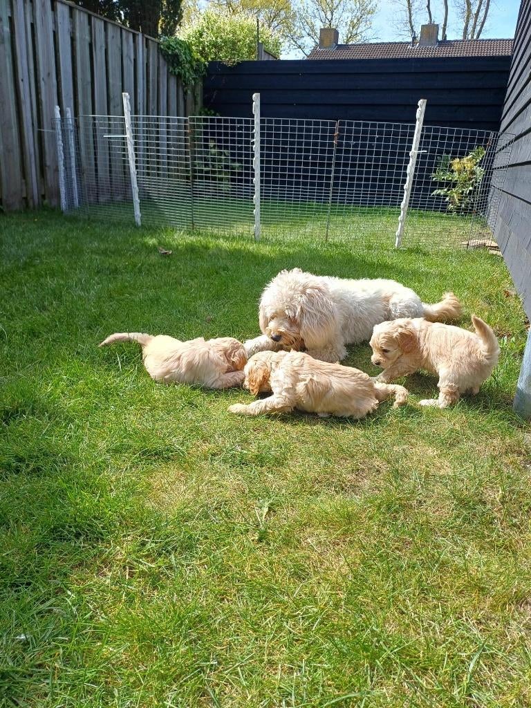 - Kruising Labradoodle pupsOnze bowie heeft op 14 maart haar eerste nestje gekregen. Het zijn 4 teefjes en 2 reutjes. De reutjes zijn op de foto's te herkennen aan de bruine en groene stip. Moeder is een kruising tibetaanse