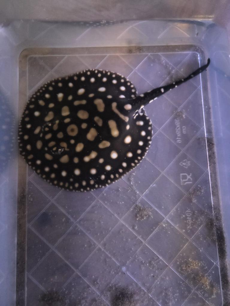 23 mrt 26predatorfish's-Gravenhage - Potamotrygon Black diamond superwhiteMooie hoge kwaliteid blackdiamond pup met superwhite gen. Erg mooie wit en begint nu steeds zwarter te worden en omtwikkeld erg goed. Ongeveer 4/5 maanden oud 16/17cm disk mannetje voor vragen foto,s