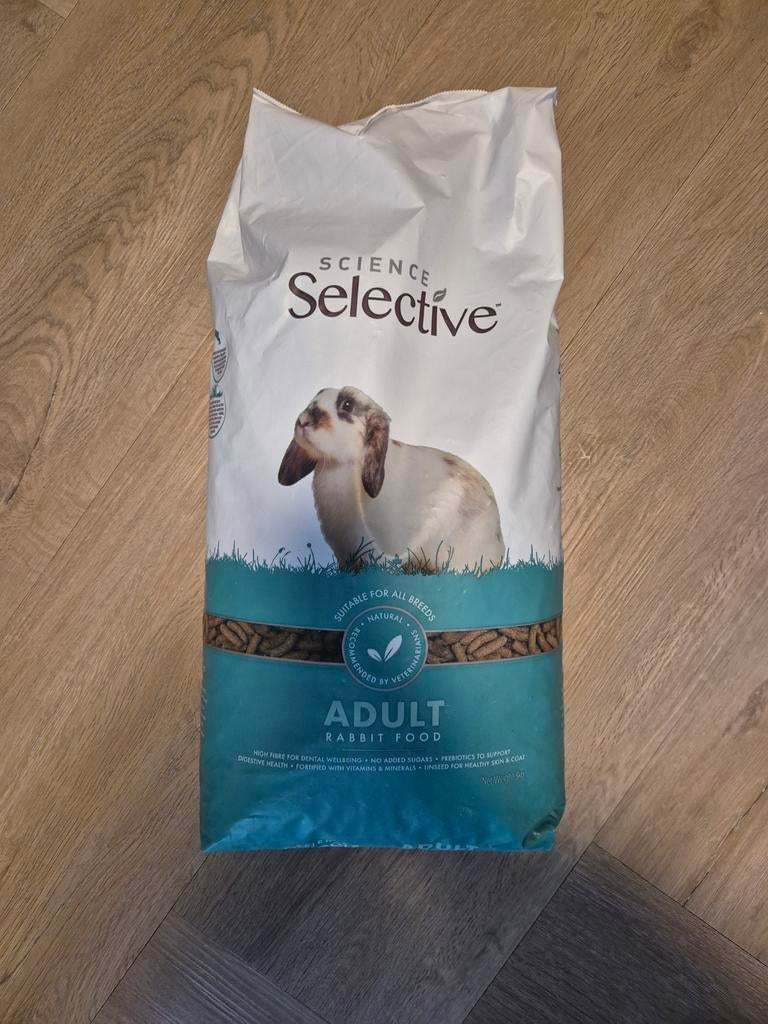 - Nieuwe zak konijnenvoerNieuwe zak konijnenvoer 3 kg merk science selective voor volwassene konijnen. Ik verkoop het omdat ons konijn is overleden. U krijgt 1/4 van hetzelfde voer erbij dat altijd in een goed gesloten ton isOphalen of Verzenden