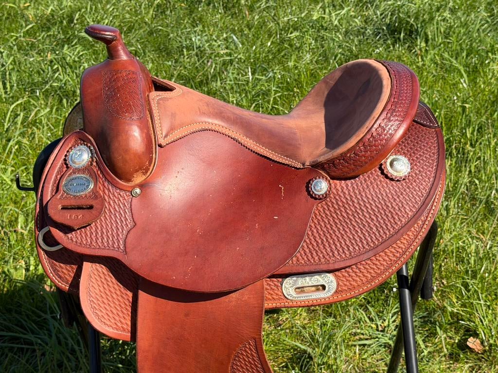 GisterenChristelBornerbroek - Equiflex westernzadel 16inchWegens aanschaf van een nieuwe is dit zadel te koop. Goed onderhouden zadel en zit fantastisch. Zitvlak 16inch. Serienummer w317610198. Inclusief fenders en beugels. De lederen saddle strings zijn opgOphalen
