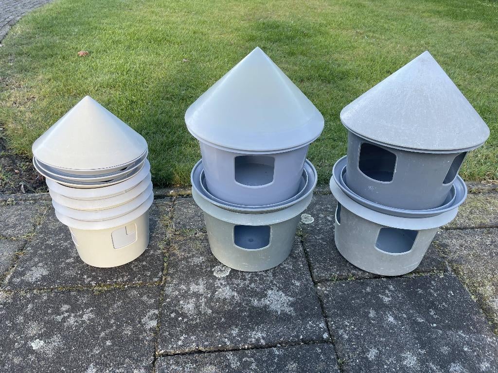 - DrinkbakkenKunstof drinkbakken voor duiven. 2 Verschillende maten. 2Ltr (4 stuks )en 1ltr. (4 Stuks let op een partij zonder deksels (7 stuks). Gebruikt maar in mooie staat. Wordt verkocht als gehele partij. All