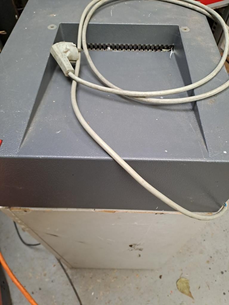 2 mrt 26KlaasseWaalwijk - Papierversnipperaar IDEAL-GARANT 180304 (1980)Robuuste papierversnipperaar van het merk ideal-garant, model 180304, geproduceerd in 1980. Ideaal voor het veilig vernietigen van documenten op kantoor of thuis. De machine is gebruikt en vertoont noGebruikt Ophalen