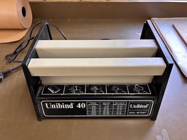 - inbindmachines met lijmrugAangeboden 2 machines om werkstukken etc in te binden. De unibind door middel van mappen met een voorgelijmde rug. De planax met linnentape om de rug. Dit zet je erop dmv warmte in de machine. 3 RolleGebruikt Ophalen