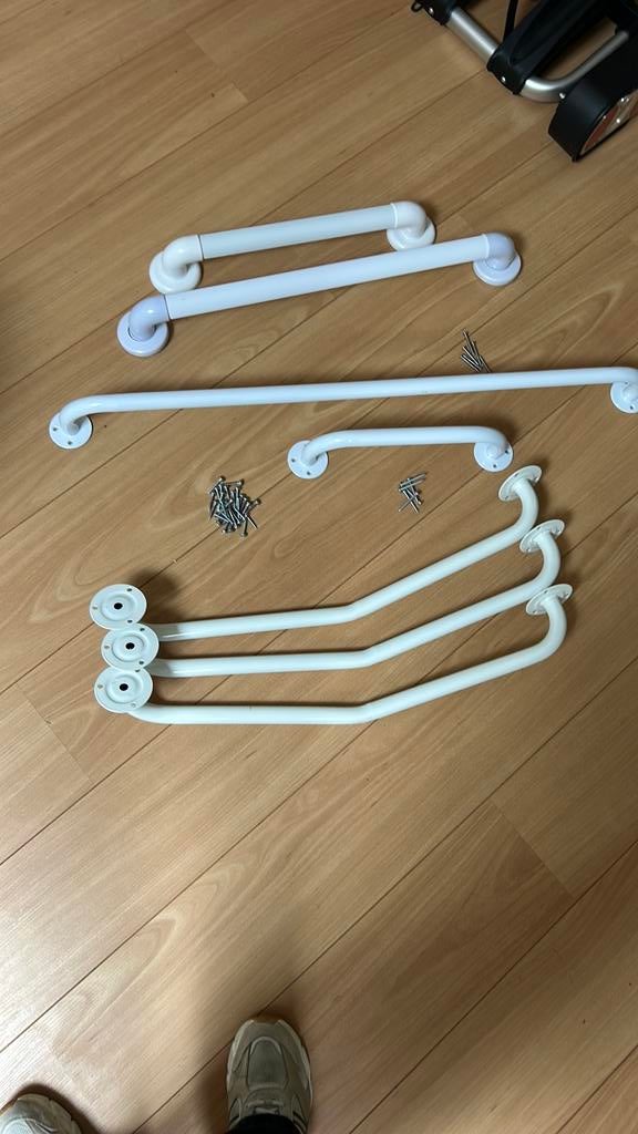 17 apr 26MarliesOostzaan - Wandbeugel wit greep handvat beugel kleine en groteVoor wie wel een steuntje kan gebruiken: handige beugels voor grip en stabiliteit bij de trap of afstapje. Om in de muur te schroeven. Afmetingen: 1 lange, buitenmaat 70 cm, greeplengte 57 cm. 15 EuroNieuw Ophalen of Verzenden