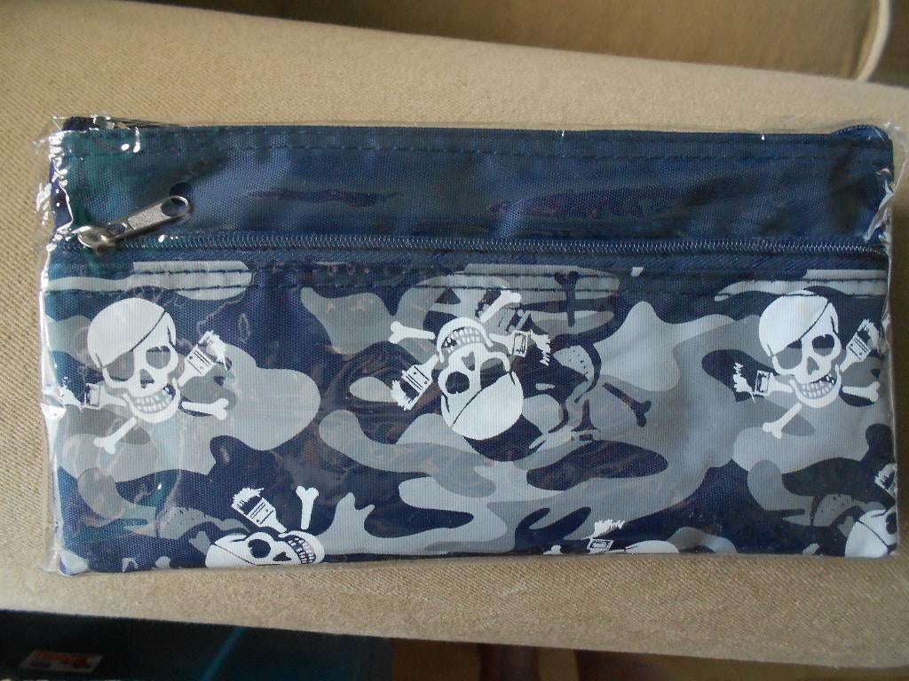- school etui blauw met doodskop nieuwZie foto, niet gebruikt. Ongeveer 22 x 11,5 cm. Ophalen. Verzenden kan, is voor eigen risico. Verzendkosten via dhl 4,20 . Geen betaalverzoek !!! Geen tikkie !!!!!!!!!!!Nieuw Ophalen