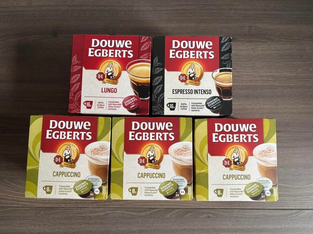 24 mrt 26BurakZwijndrecht - Douwe Egberts cups - Dolce Gusto - Nieuw!Twee dozen douwe egberts cups, geschikt voor nescafe dolce gusto systemen. Beide dozen zijn nog ongeopend en in perfecte staat. Een doos cappuccino (8 cups) en een doos espresso intenso (16 cups).Ophalen of Verzenden