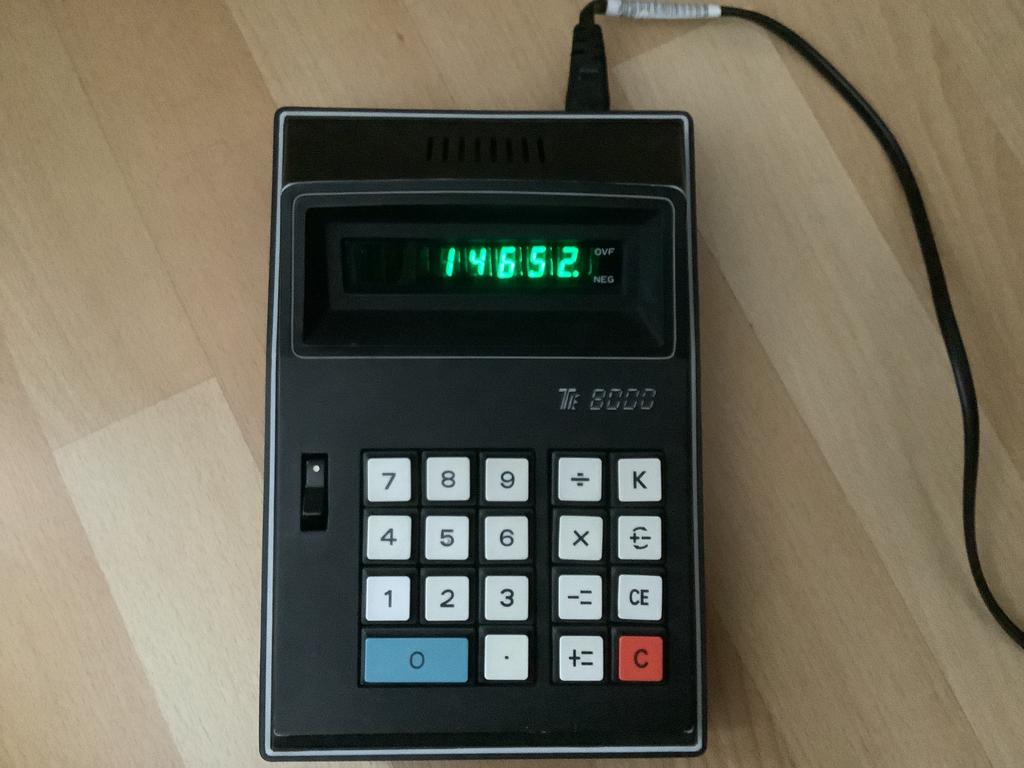 - TE8000 v&d vintage vfd nixie? tubes rekenmachine calculatorGoed werkende tafelcalculator, dus groter dan een zakrekenmachine heldere groene vfd tube leds, of nixie? In mooie staat kostte indertijd 295 gulden bij v&d vroom en dreesman ca 1972 afmetingen 14Gebruikt Ophalen