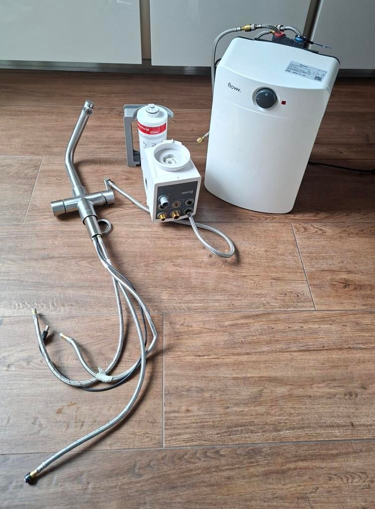 - Floww combi xl boiler en rvs kraanKraan en boiler zijn in goede staat om warm water te krijgen. Mooie rvs kraan zit erbij en filter van 1 maand oud (nieuwprijs 84 euro). Wil je er kokend water uit krijgen dan moet er een regelunit verOphalen
