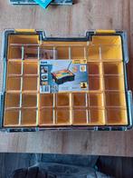 Een raaco assortimentskoffer, uitgevoerd met een vaste vakverdeling. Kleur: blauw afmetingen: +/- 33,5x24,5,5 cm het koffertje is gebruikt, maar bevindt zich in goede staat. Normale gebruiksspoortjes, maar vrij van noemenswaardige schades. Het koffer...