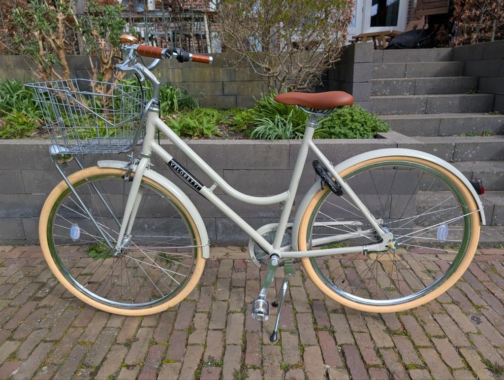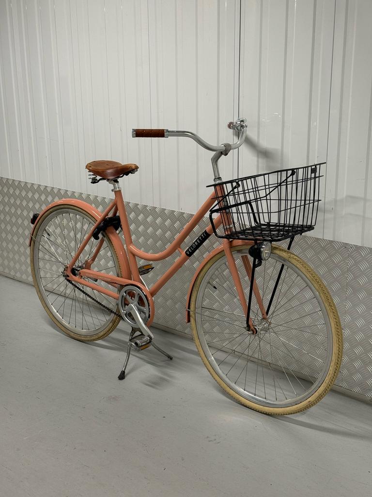 GisterenBarryEnkhuizen - Veloretti Robyn Blazing Salmon, 55 cm, Brooks edition.The bike is used, so there are some visible scratches and signs of wear, but overall it looks good and functions like new. It is equipped with a brooks saddle and grips, a basket, and both the front aZo goed als nieuw Ophalen