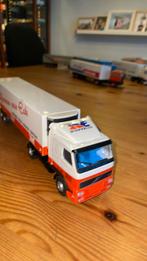 Volvo fh + mega trailer drie asser toblerone chocolade (stickers). Fabrikant lion toys. 1/50, Metalen model, lengte 32 cm. Conditie: netjes, spoiler / fenders weg. Originele verpakking: nee. Bod vanaf