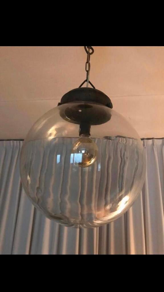 - 2 grote Flamant hanglampen.Hoogte 86 cm tot aan t plafond. Handmade glass. Is nog 30 cm langer te maken, ik had hem ooit ingekort. Snoer in tact gehouden, alleen een paar schakels er van tussen gehaald. Schakels zitten er nog bZo goed als nieuw Ophalen