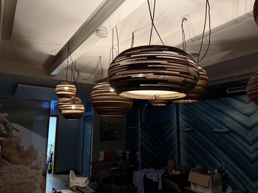 Ontdek unieke hanglampen van Graypants, ontworpen met gerecycled karton. Elk stuk is een combinatie van creativiteit en natuurlijke materialen voor jouw woning.