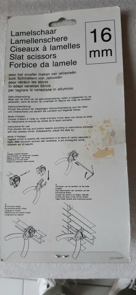 - Lamel schaar /lamellen schaar . NieuwOm gemakkelijk en vooral netjes de lamellen van een jaloezie kleiner te maken.Nieuw Ophalen of Verzenden