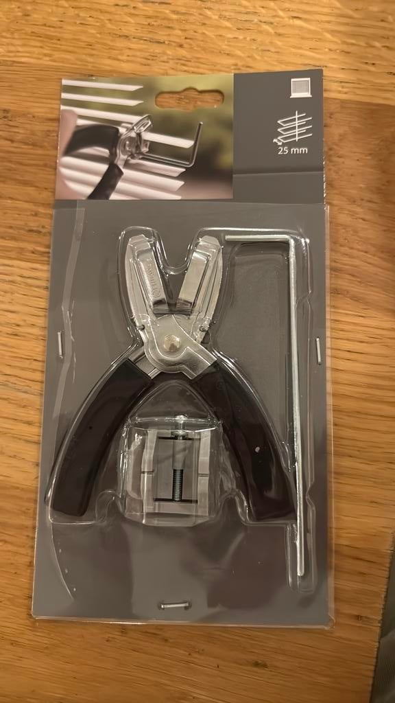 24 mrt 26cGroningen - Lamellen knipperEen lamellen knipper in de verpakking. Het is een grijskleurig hulpmiddel om lamellen op maat te maken. De verpakking is nog dicht.Ophalen of Verzenden