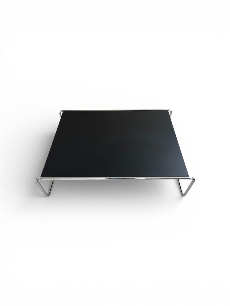 23 feb 26m.vogelsHelmond - Thonet design salontafel Bauhaus StijlThonet salontafel met chromen onderstel en zwart melamine achtig blad (waarschijnlijk model b20b). Tafel is dubbel gemerkt en verkeert in nette staat met lichte gebruikssporen. Een aanwinst voor wie hGebruikt Ophalen