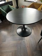 - Zwarte eettafel met trompetvoet. 110 rondZwarte eettafel met metalen trompetvoet en een houten blad. 110Cm rond zelf afhalenZo goed als nieuw Ophalen Vier personen