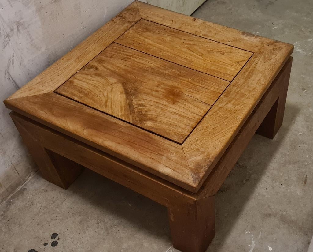 10 apr 26SherryAmsterdam - Mooie zware kwaliteit Teakhouten SalontafelTeakhouten salontafel, zware kwaliteit met gebruikssporen maar met wat meubelolie of wax ziet het er weer netjes uit. Blad is 60x60 cm. Alleen ophalen, amsterdam centrum/oostGebruikt Ophalen