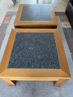 5 apr 26RogerOosterhout - 2 x Salontafel of bijzettafel.2 mooie en stevige salontafels of bijzettafel. Materiaal: hout: iroko teak blad: gebrand graniet maat: 80 x 80 cm en 50 cm hoog. Zie op de 5e foto 2 heel kleine beschadigingen. Nieuwprijs€ 850,00Gebruikt Ophalen