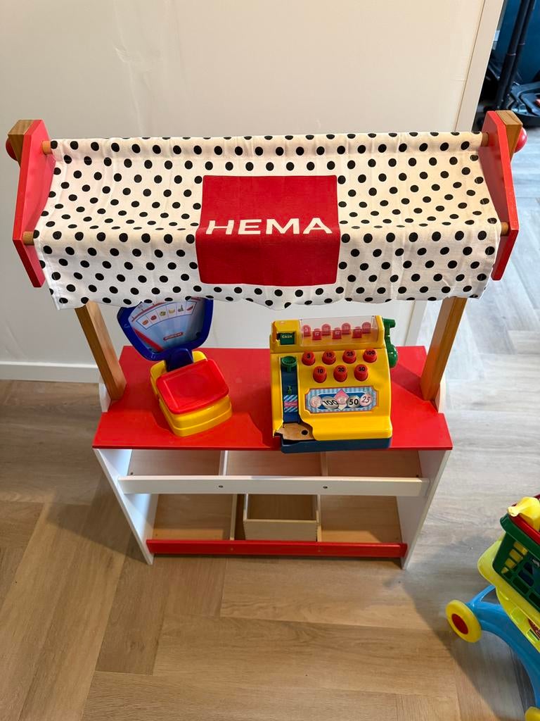 VandaagEijsermansZeeland - Hema speelgoed winkel /met kassa, winkelwagen en accessoiresLeuke speelgoed winkelset voor kinderen, met marktkraam van hema, speelgoedkassa, winkelwagen, mandjes en verschillende speelgoedboodschappen. Kinderen kunnen hiermee hun eigen winkeltje spelen, boodsZo goed als nieuw Ophalen of Verzenden