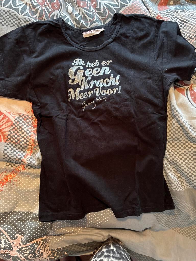 8 apr 26CreaCraftsZaandam - Zwart T-shirt met grappige tekst - Maat XLDit is een zwart t-shirt met korte mouwen en een ronde hals. Op de voorkant staat in zilverkleurige letters de tekst 'ik heb er geen kracht meer voor! Gerard joling'. Het shirt is van het merkGedragen Ophalen of Verzenden